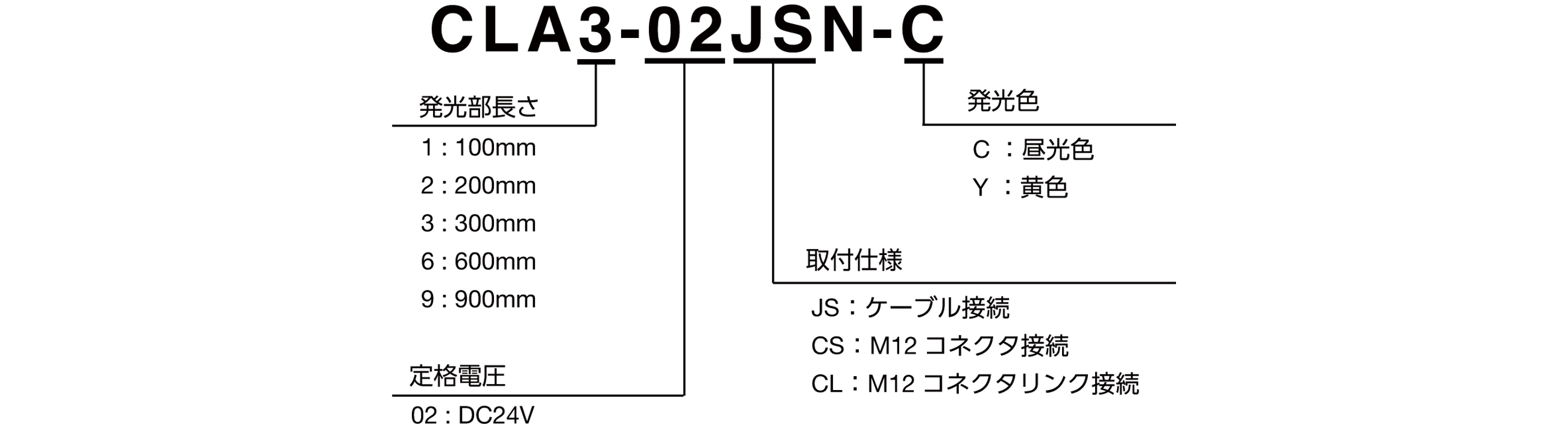 | CLA3-02CSN-C | 300mm | DC24V | M12コネクタ(4ピン)接続 | 昼光色 |
