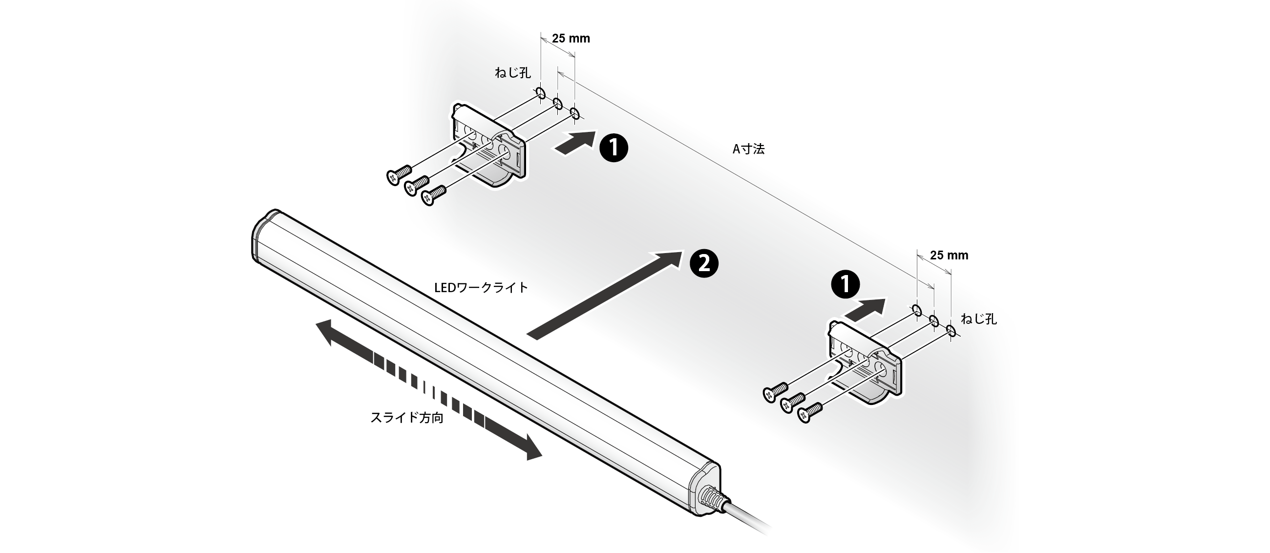| LEDワークライト型式 | 取付ピッチ | ブラケット使用数 | |