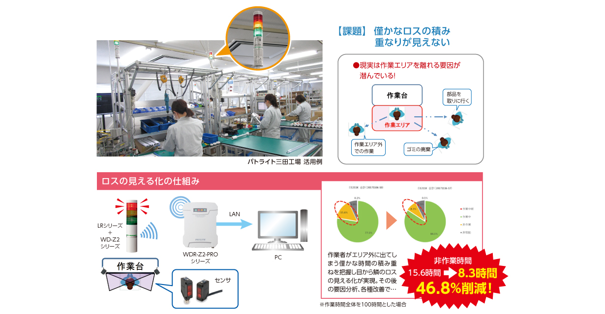 作業者が部品を取りに行くなど作業 エリアから外れるわずかなロスの見える化ができていなかった。
