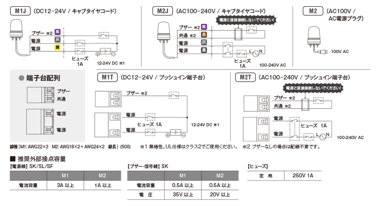 | SKH-M2TB-R / Y / G / B | Φ100 | AC100 - 240V | プッシュイン端子台 | あり | 赤 / 黄 / 緑 / 青 |