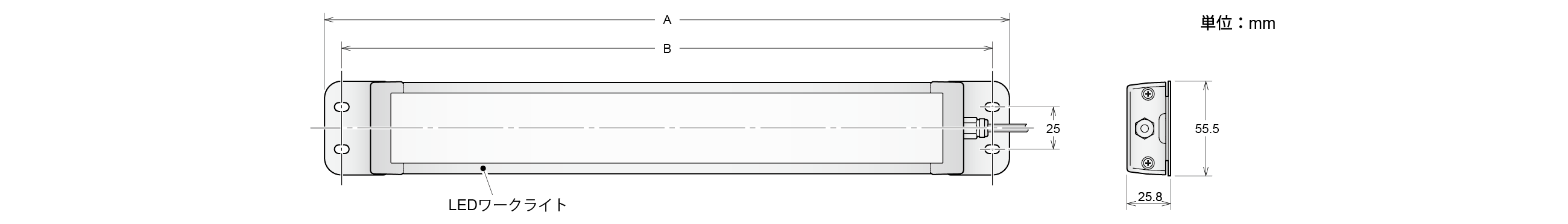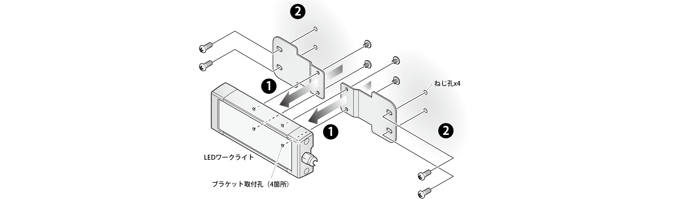 LEDワークライト型式 | 全長 | 取付ピッチ | ブラケット使用数 |
